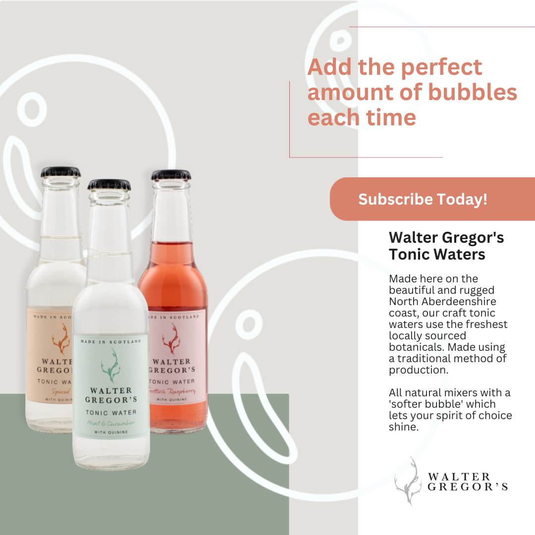 Local to Aberdeenshire, Walter Gregor produces some of the finest tonic water which adds the perfect amount of bubble to and spirts. All products and ingredients are all locally sourced.